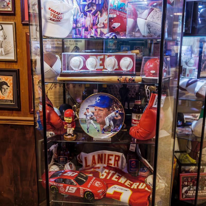 My husband really enjoyed looking at all the sports memorabilia. The food and service were good. We went with a group, and we were seated in a back room. We were able to talk without bothering anyone.